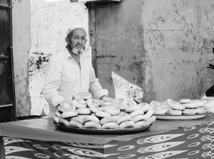維吾爾老人很會(huì)打馕,這又是小城的另一項(xiàng)營(yíng)生。原先住在農(nóng)村,大家都是用自己的馕坑來打馕,打一次夠一個(gè)星期食用。進(jìn)了城,馕坑沒了,主婦們用烤箱烤了幾次,總覺得少了那么一點(diǎn)味道。于是,小城里出現(xiàn)了幾個(gè)打馕人,在馕坑里打好馕,每日售賣。