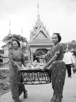 關(guān)門節(jié)上,傣家婦女用美食款待客人