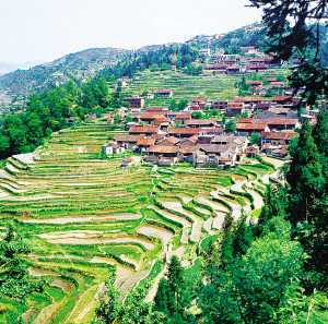 畬族主要聚居在浙江省和福建省山區(qū)的丘陵、山谷盆地。浙江景寧是我國(guó)唯一的畬族自治縣。畬族聚居的村寨都在離縣城不遠(yuǎn)的大山里,大都選擇避風(fēng)向陽(yáng)、有水源的地方建房成村。在村寨四周栽種松樹、楓樹、榅樹、苦櫧,房前屋后種毛竹、果樹。村口有樹能擋風(fēng),屋后種樹能蓄水,空氣也格外新鮮,因此,便有了“造成風(fēng)水畫成龍”的畬族諺語(yǔ)。
