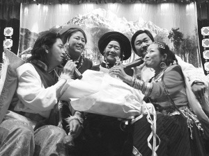 2008年,阿玻赴美國(guó)參加聯(lián)合國(guó)之春藝術(shù)節(jié)的演出。在匹茲堡,有一位70多歲的老太太觀看了阿玻參加的3場(chǎng)演出。她對(duì)阿玻說:“雖然我沒有去過你的家鄉(xiāng),也聽不懂你唱的歌詞,但是透過你的歌聲我能想象到,你的家鄉(xiāng)一定有雪山、草地、牛羊,有溫暖的陽(yáng)光,那一定是個(gè)美麗的地方。”阿玻的心在那一刻顫動(dòng)了。他說:“在美國(guó),我用納西語(yǔ)演唱了《夢(mèng)中的香格里拉》。雖然語(yǔ)言不通,但是人們還這么懂我的歌,讓我很感動(dòng)?!?/p>
