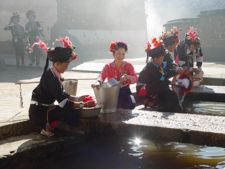 各地男子的服飾大同小異,均留短發(fā),未婚男子包一頭或兩頭鎖彩邊的白布或黑布包頭,已婚男子包藏青色布包頭。青年男子的包頭上往往插有鮮花或絨球飾。穿藍(lán)、白、黑等素色斜紋布對襟布扣袢上衣,黑色或藍(lán)色長褲,系黑色綁腿。未婚婦女留長發(fā)盤辮。穿白、藍(lán)色對襟銀扣上衣,黑、藍(lán)色長褲。系繡花飄帶黑布裙。