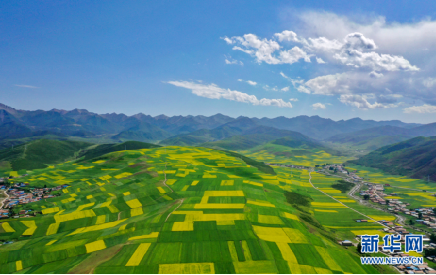 航拍門源縣油菜花海。新華網(wǎng) 宋忠勇 攝