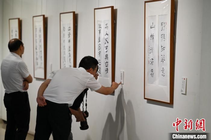 圖為觀眾參觀書(shū)法展?!『闻罾?攝