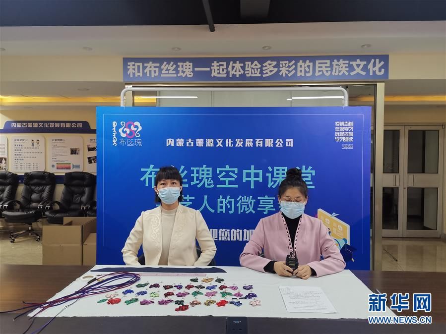 工藝師孫亞杰(左)通過空中課堂為內蒙古各地的近500名婦女講授盤扣制作工藝。