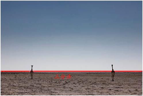 三分法構(gòu)圖是最常用的一種構(gòu)圖形式,它是將畫面上中下分成了1/3,可以理解成上、中、下,或者近、中、遠景的概念。