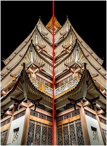 對稱法構(gòu)圖,就是中軸對稱,分為縱軸對稱和橫軸對稱,把整個畫面進行平分,帶來視覺的平衡,這種對稱法構(gòu)圖主要是用在一些很對稱的題材上,比如建筑類題材上用的要多一些。