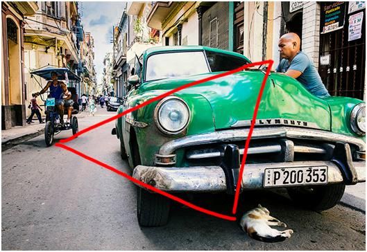 我們看到下面這張圖也是以對角線的構(gòu)圖形式,只不過這個對角線從畫面中明顯的看不出它是一個對角線,而是畫面中一些重要元素形成的一個對角線趨勢,我們暫且把它稱之為暗對角線。