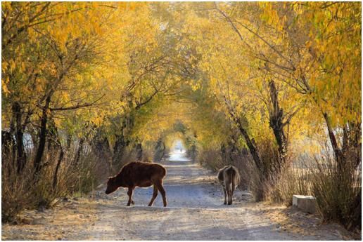 這幅圖采取了包圍式構(gòu)圖,就是框架式構(gòu)圖,早晨的暖光,加上黃色的樹葉,使得整個片子有了很好的秋意氛圍,構(gòu)圖也是不錯。但這張照片,還是可以有改善和提升的地方。