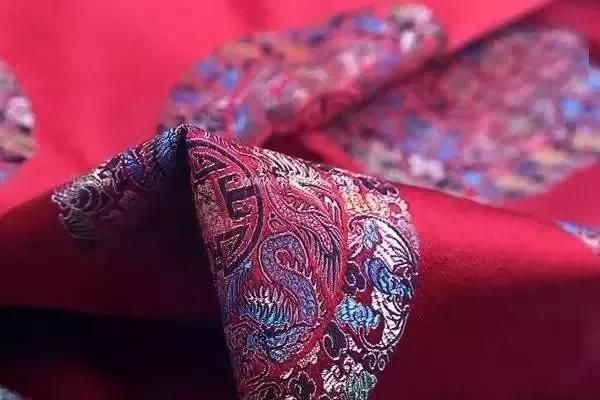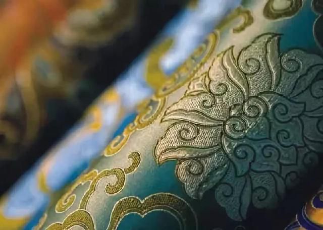 民族錦一般采用多色彩條嵌入金銀絲織成,多用于民族服飾,故名。其特點(diǎn)是錦面上的圖案從經(jīng)緯線(xiàn)交織中顯現(xiàn)出自然光彩,富有光澤。常見(jiàn)的圖案有團(tuán)花、葵花、“萬(wàn)”字“壽”字等。彩暈錦的特點(diǎn)是織紋華貴相映,明暗匹配,層次分明,并以色暈過(guò)渡,花紋絢麗多彩,別具一格。