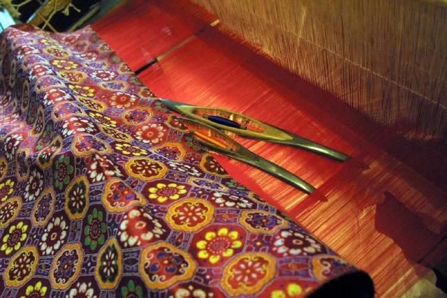 蜀錦其價(jià)如金主要體現(xiàn)在制作工藝上。要完成一件作品,從程序上說(shuō),主要需經(jīng)歷初稿設(shè)計(jì)、定稿、點(diǎn)意匠、挑花結(jié)本、裝機(jī)、織造等幾個(gè)重要過(guò)程。每一道程序又涉及到很多獨(dú)特的技藝。用蜀錦大花樓木質(zhì)機(jī)織造蜀錦,拽花工和織手須掌握多種技能。這些古代織造蜀錦的技能令人嘆為觀(guān)止。