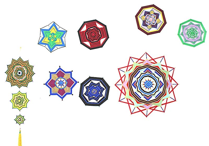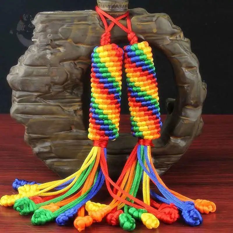 科爾沁繩編設(shè)計(jì)精巧,尤其擅長(zhǎng)表現(xiàn)游牧民族生活之美, 具有地域民族風(fēng)情之美,繩結(jié)造型多為上下一致、左右對(duì)稱、正反相同、首尾銜接。一根彩繩通過綰、結(jié)、穿、纏、繞、編、抽等多種工藝技巧,按照章法循環(huán)有致、連綿不斷編制而成。近代由于蒙漢文化的融合,繩編技法也開始相通了。