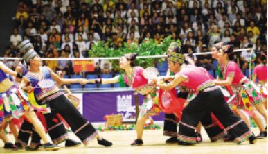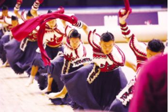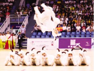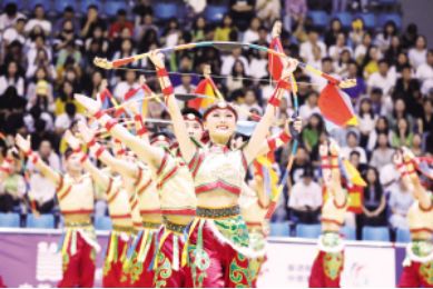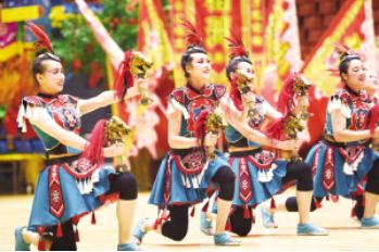 ?、诤幽详?duì)表演項(xiàng)目《柔力民族情》 王京廣 張華攝