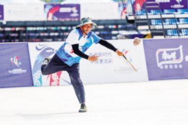 ?、夂幽详?duì)與云南隊(duì)在木球比賽中 趙培華攝