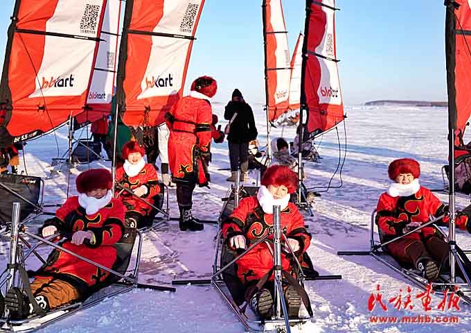 當?shù)厝罕婓w驗冰帆運動的無限樂趣。