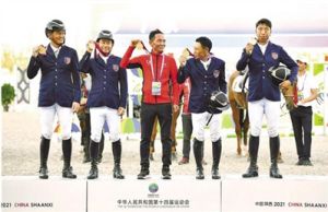 9月21日,西藏競技馬術(shù)隊以總罰分106.5分位居第一,奪得第十四屆全運會馬術(shù)三項賽團體賽冠軍。