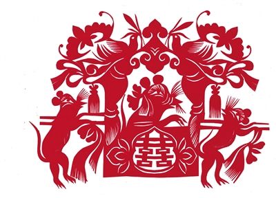 冬日的陽光透過玻璃窗,灑在老屋的炕上。幾位婦女在炕上鋪一塊布,對窗盤腿而坐,然后一手捏紅紙,一手拿剪刀,神情專注地剪“老鼠嫁女”。這是春節(jié)前在和林格爾縣河頭村看到的畫面。老鼠嫁女,也叫老鼠娶親,在傳統(tǒng)剪紙中有不同的版本。據(jù)了解,民俗剪紙“老鼠娶親”在清道光年間就開始流行了。欣賞和林格爾剪紙傳承人創(chuàng)作的“老鼠娶親” ,老鼠的形象多采用粗獷輪廓,又用細(xì)線條加以襯托,如老鼠胡子、花轎穗子、喜鵲羽毛、花紋等。河頭村的婦女剪窗花時(shí),鼠是常表現(xiàn)的題材之一,被稱為“靈人”,如老鼠舔燈盞、老鼠偷瓜、老鼠吃葡萄、鼠咬天開等。幾十年前,段蓮女老人剪的老鼠靈活生動(dòng),富有動(dòng)感,遠(yuǎn)近聞名,她的 “吉祥鼠”剪紙技藝傳承至今。