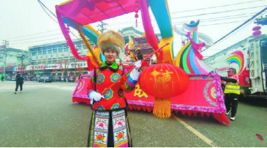 當日,擂臺廟會上三官儀仗隊、天官賜福等耳目一新的民俗活動一經(jīng)亮相,就令現(xiàn)場觀眾大呼過癮;同步舉行的秦腔戲劇、傳統(tǒng)皮影戲、花兒專場等展演與優(yōu)秀電影展播等,好戲連臺、精彩紛呈;充滿濃郁地方特色的彩虹故鄉(xiāng)、七彩農(nóng)業(yè)、土族盤繡、青稞美酒、互助家政等代表互助“五張名片”的主題彩車巡演,在亮出非遺文化、民俗文化、河湟文化和農(nóng)耕文化等元素符號的同時,彰顯出互助縣堅持生態(tài)優(yōu)先、綠色發(fā)展,建設國家全域旅游、全國現(xiàn)代農(nóng)業(yè)、土族文化傳承、青稞產(chǎn)業(yè)振興、勞務經(jīng)濟發(fā)展“五個示范區(qū)”的生動實踐;19個鄉(xiāng)鎮(zhèn)精妙絕倫、氣勢磅礴的舞龍表演,傳達出無窮意趣、雄渾氣勢和神韻風采,寓意土鄉(xiāng)兒女奮進新征程、建功新時代的豪邁。