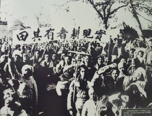 冀中農(nóng)民舉行擁護(hù)土地改革運動大會(翻拍于西柏坡紀(jì)念館)。 新華社記者 朱旭東攝
