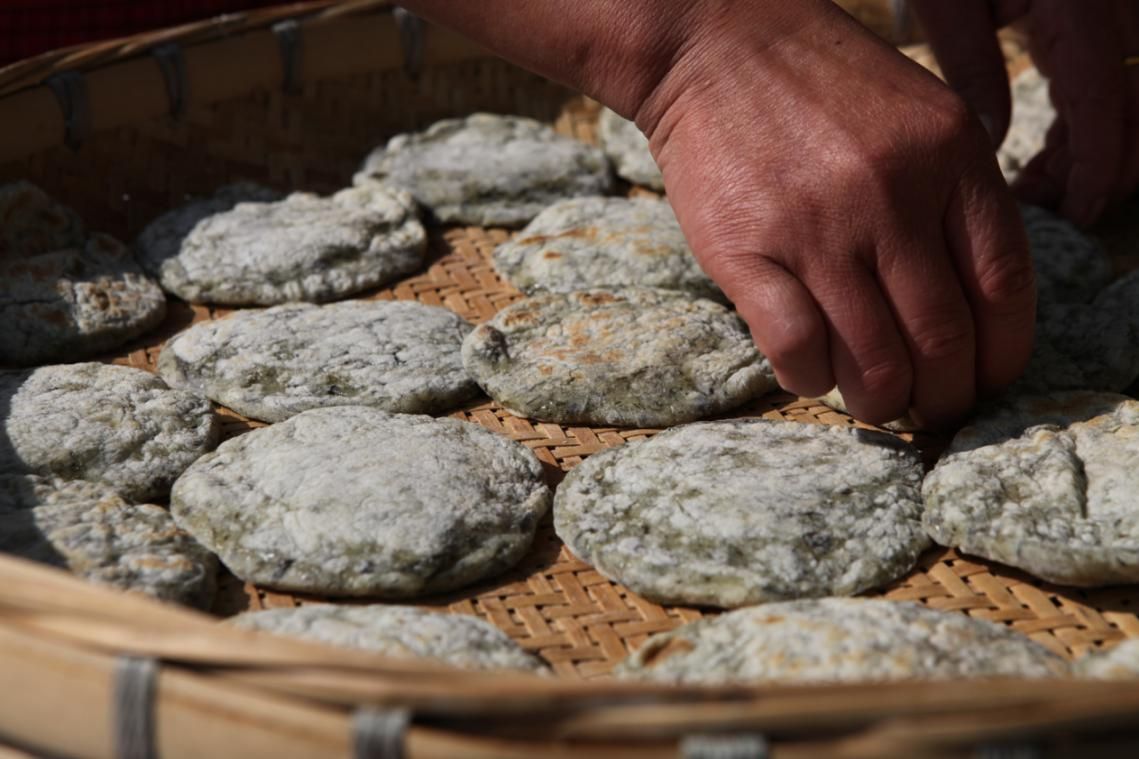 無(wú)論是面團(tuán)還是餡心,清明粑的原材料都有益身心。清洗鍋面,生起爐火,一道美食即將呈現(xiàn)。