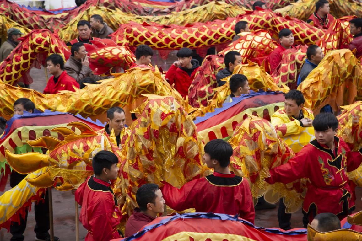 大部分人家都只是在庭院接龍,只有少部分人家會(huì)把龍請(qǐng)入中堂。龍燈在院中轉(zhuǎn)幾圈,然后跟隨牌燈進(jìn)入中堂。首先主人需要祭拜龍燈,才開始喊祈福的偈子。同時(shí)主人要更換牌燈和龍燈的香燭。玩龍燈有許多禁忌,龍是順著進(jìn)門,倒著出門。