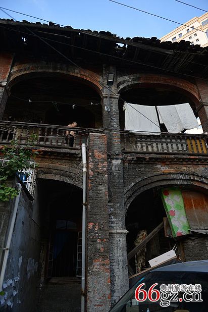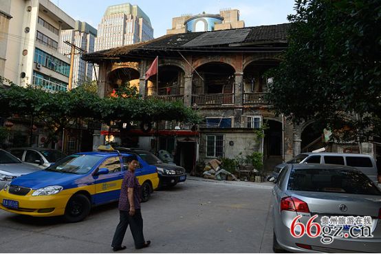 在中華北路主大街中段,穿過(guò)一個(gè)百米左右的小巷子,沿著一個(gè)小斜坡往上,盡頭一個(gè)寬敞的大院子就是“毛公館”。但是比起貴陽(yáng)現(xiàn)存的其他民國(guó)建筑,“毛公館”顯得殘破不堪。如今的大院已看不出任何歷史文化古跡的痕跡,“毛公館”周邊已經(jīng)被兩個(gè)小高層建筑包圍,大院邊是一棟富麗堂皇的銀行辦公大樓和一棟證券大樓,相比起來(lái),“毛公館”的存在顯得與這個(gè)城市格格不入。
