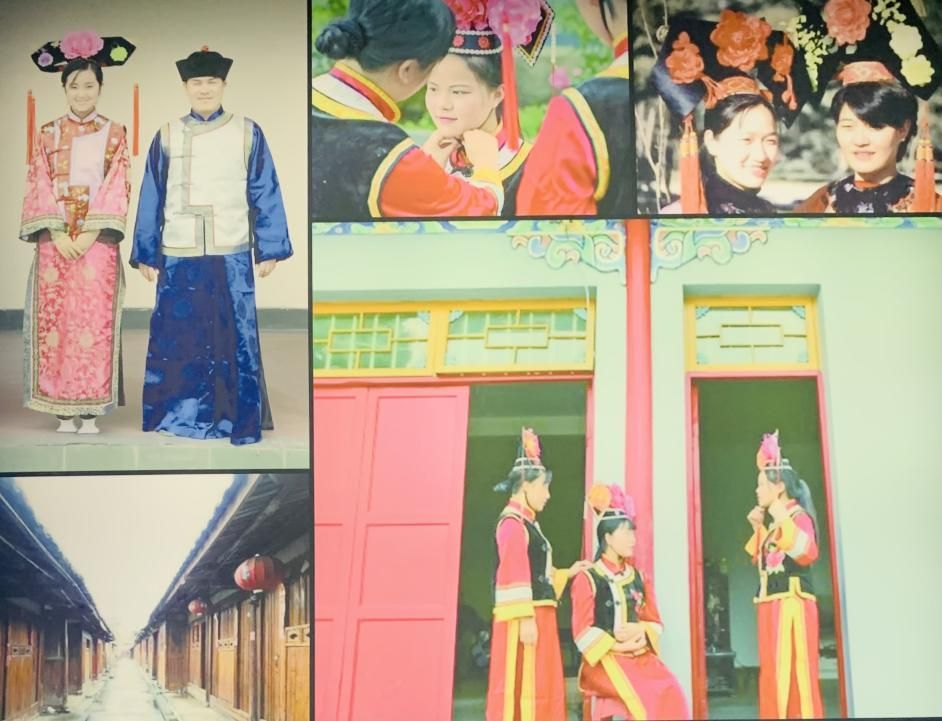 身著民族服飾的滿族男女和滿族民居(許覬佳攝于貴州省博物館)